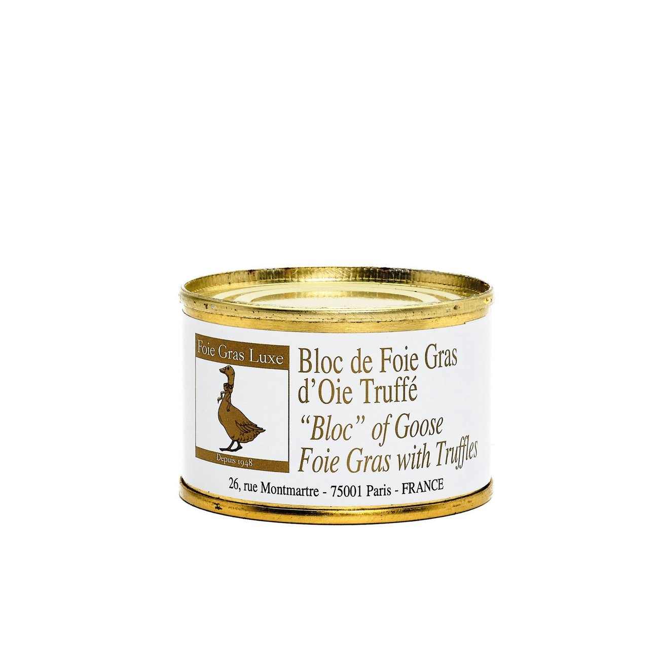 Découvrez le Bloc Foie Gras d’Oie 3% Truffé, la version truffée de notre produit phare. Dans sa boite conserve, ce délice gastronomique est un véritable trésor pour les amateurs de foie gras.