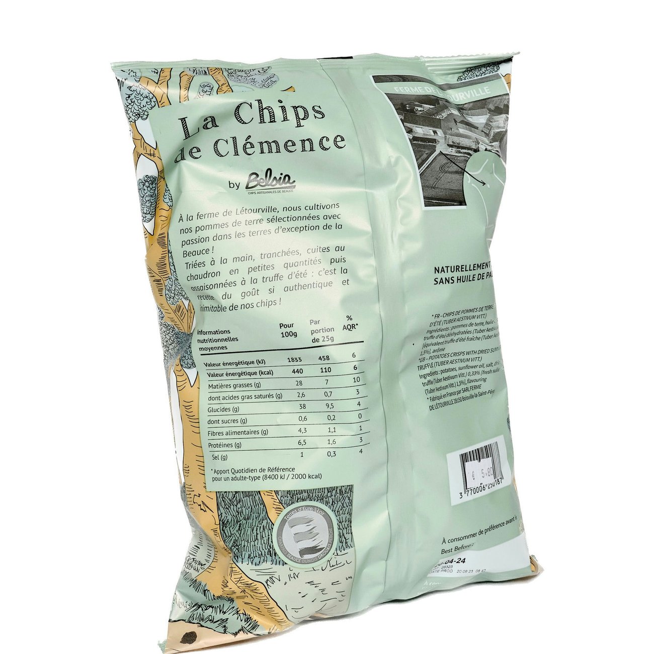 Les chips à la Truffe d’Été sont une véritable invitation à l’exquise gourmandise. Présentées dans un sachet élégant, ces délicieuses chips de pommes de terre sont préparées avec soin, cuites au chaudron pour une texture croustillante à souhait.