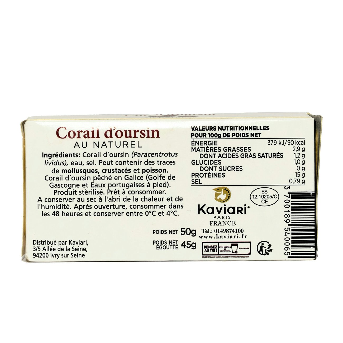 Le corail d’oursin en boîte : une texture crémeuse et des saveurs légèrement iodées. Un vrai voyage gustatif sur les côtes ibériques. A déguster sur du pain grillé ou pour sublimer vos sauces et soupes de poisson !