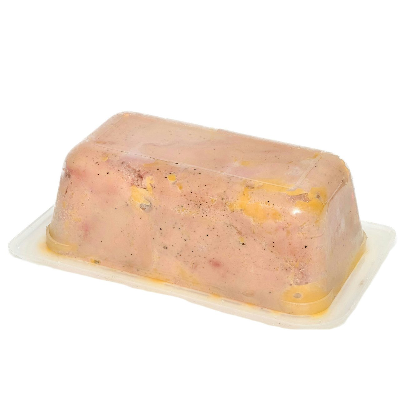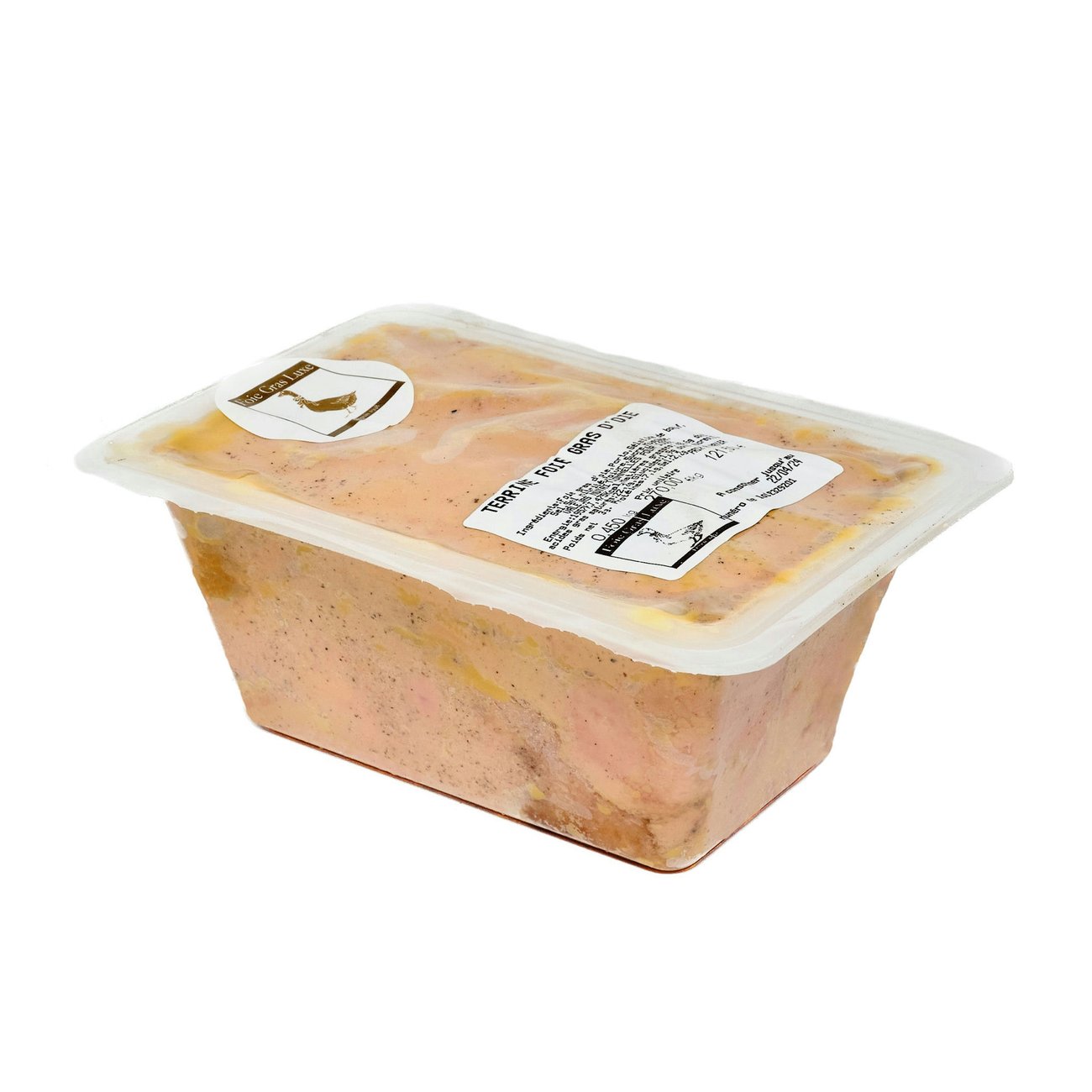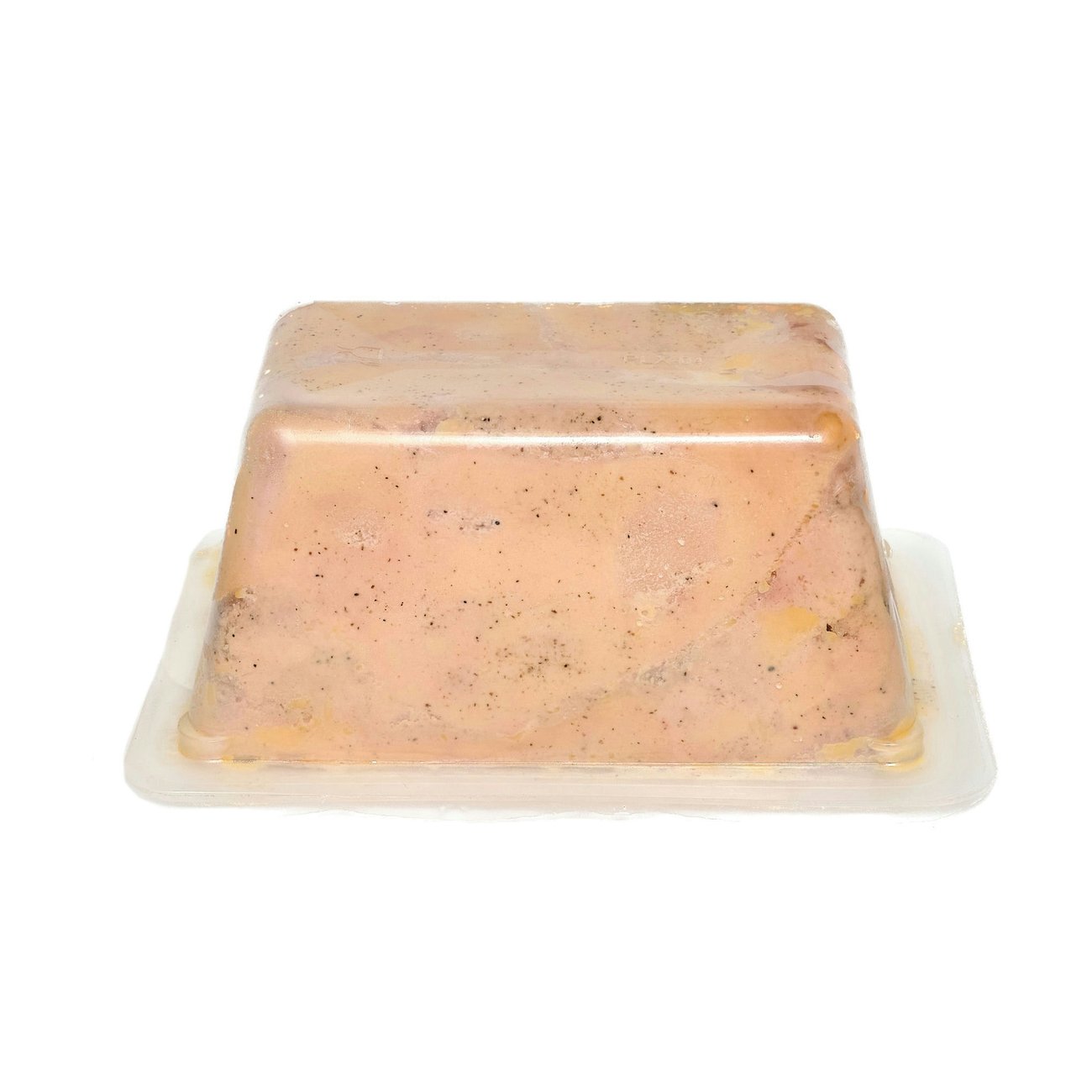 Terrine de foie délicatement assaisonnée. Préparée maison avec une subtile touche de Porto et une pointe de noix de muscade. Un met authentique, à déguster avec du pain d’épices ou de la fleur de sel. Parfait pour régaler vos convives.