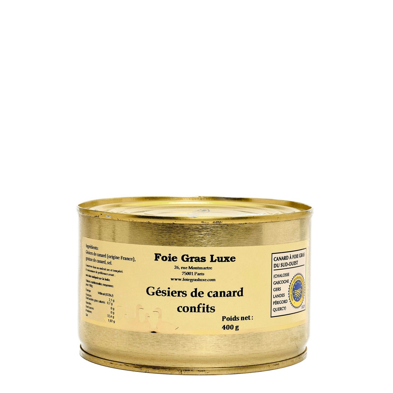 Chez Foie Gras Luxe, la qualité est notre priorité. Nos gésiers de canard confits sont préparés avec soin afin de vous offrir un produit d’exception. Nous sélectionnons rigoureusement nos ingrédients pour garantir leur fraîcheur et leur saveur authentique. Chaque bouchée de nos gésiers de canard confits est une expérience gustative unique qui ravira les amateurs de cuisine raffinée.