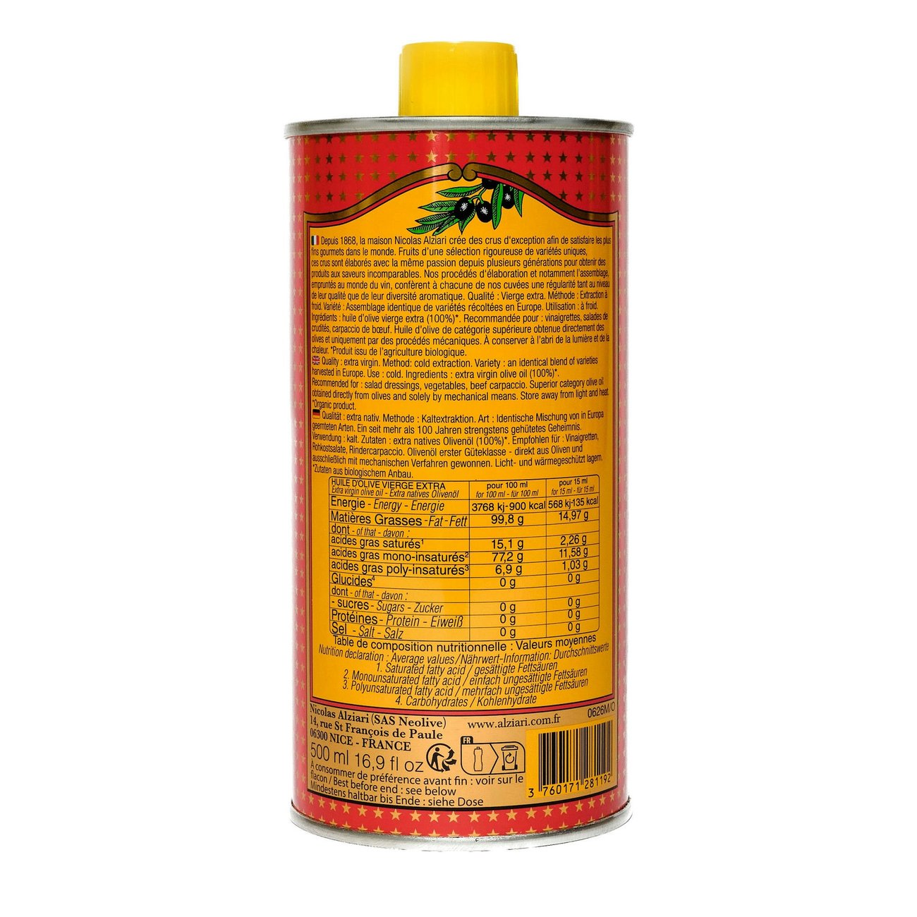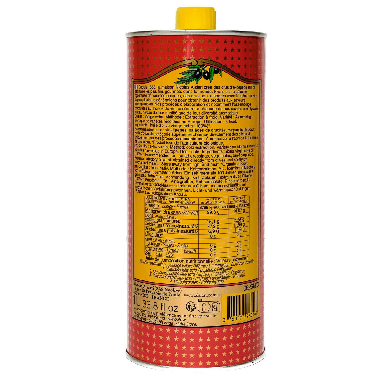 Le secret de cette huile d’olive réside dans sa méthode d’extraction à froid, préservant ainsi toutes les qualités nutritives et gustatives de l’olive. Obtenue avec le plus grand soin, cette cuvée vous séduira par son goût franc et ses arômes vifs.