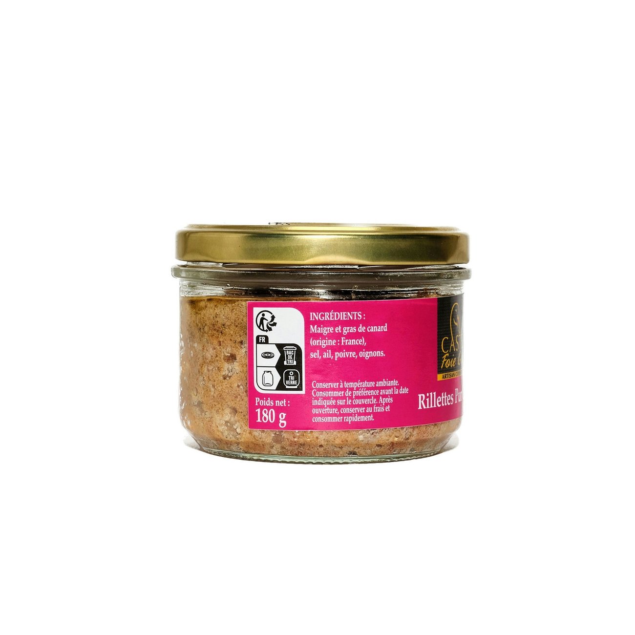 Verrine – Découvrez la gourmandise authentique du canard dans un bocal. Des rillettes fondantes et savoureuses, préparées avec soin : viande de canard lentement confite dans la graisse et effilochée délicatement, le tout agrémenté d’une subtile touche d’oignons. À savourer sans modération !