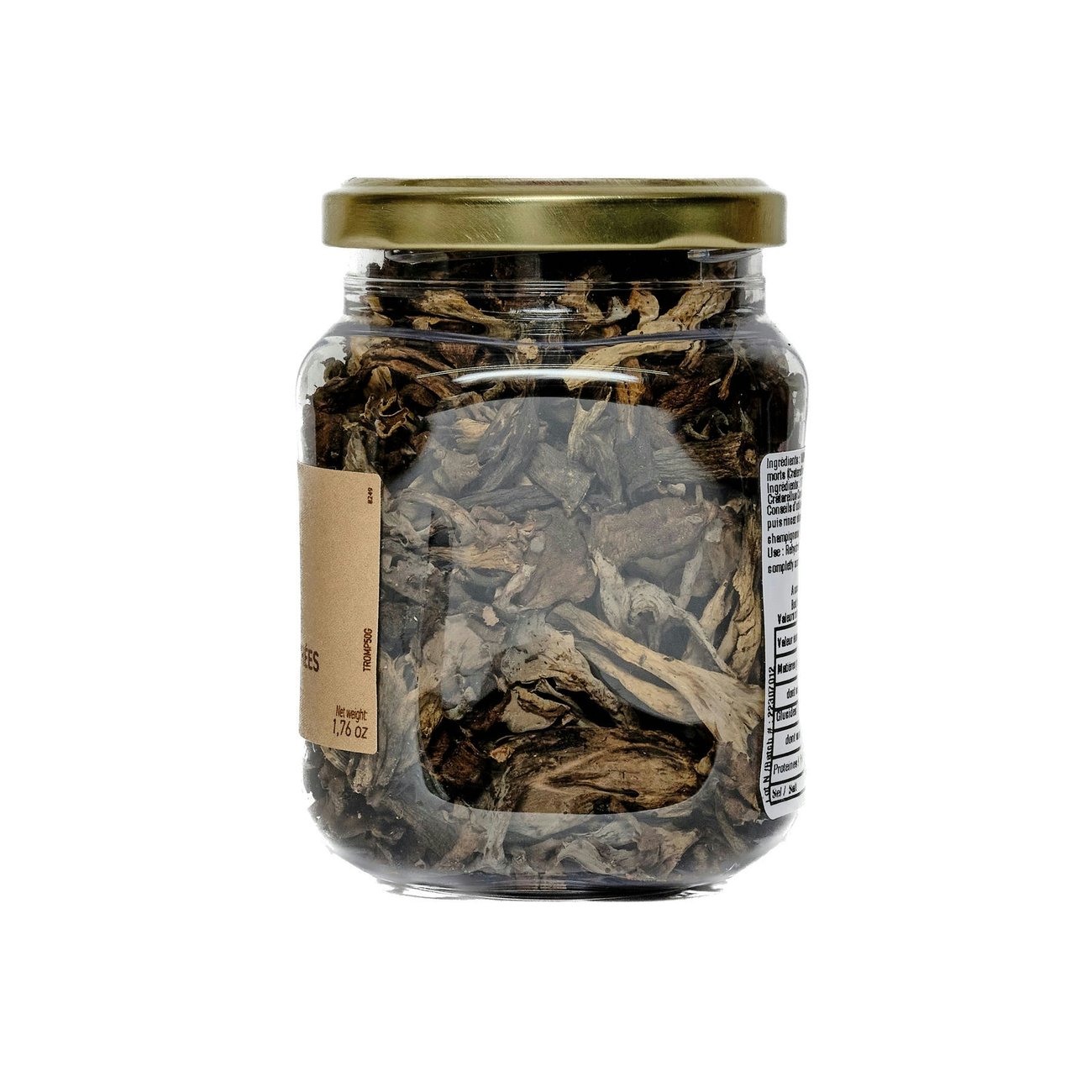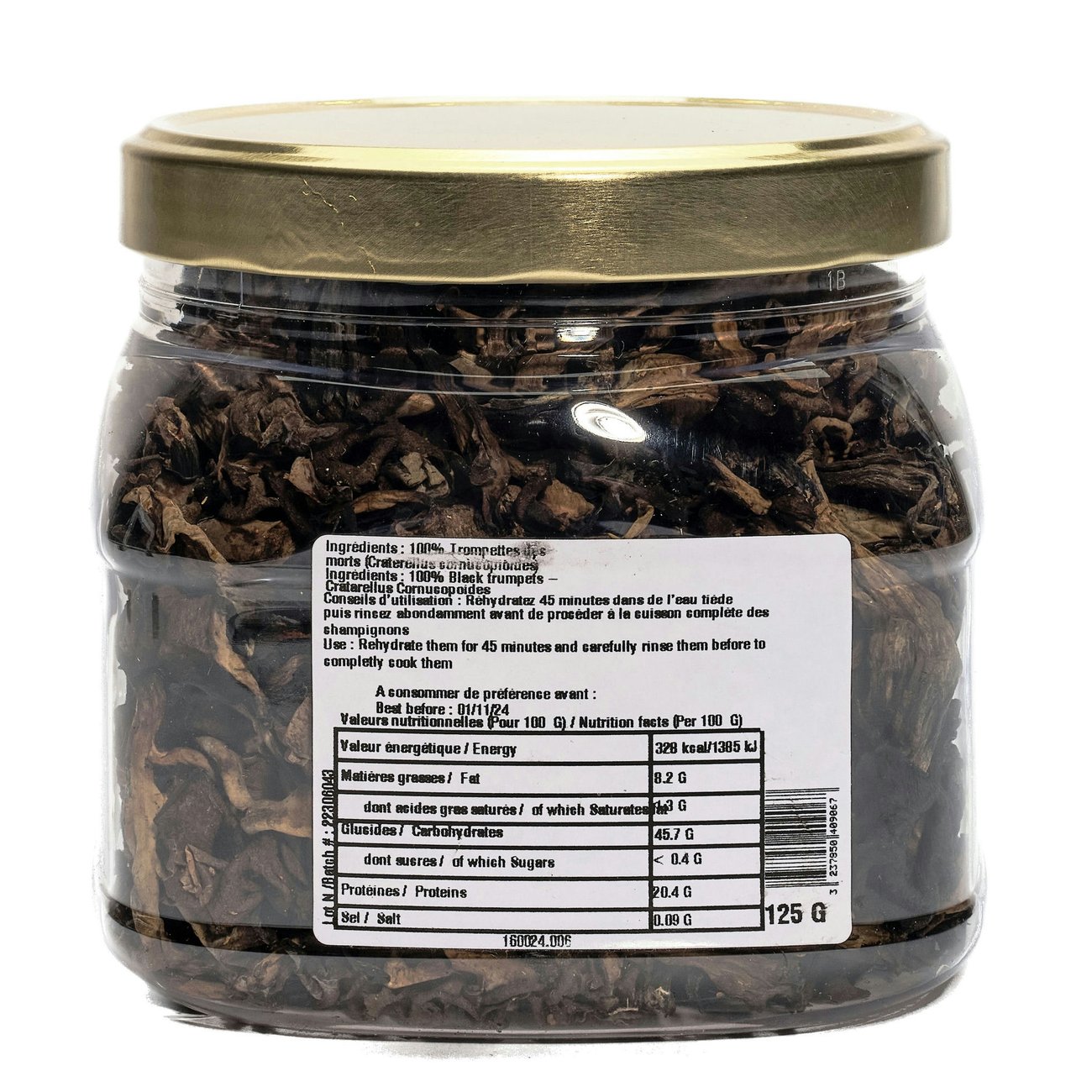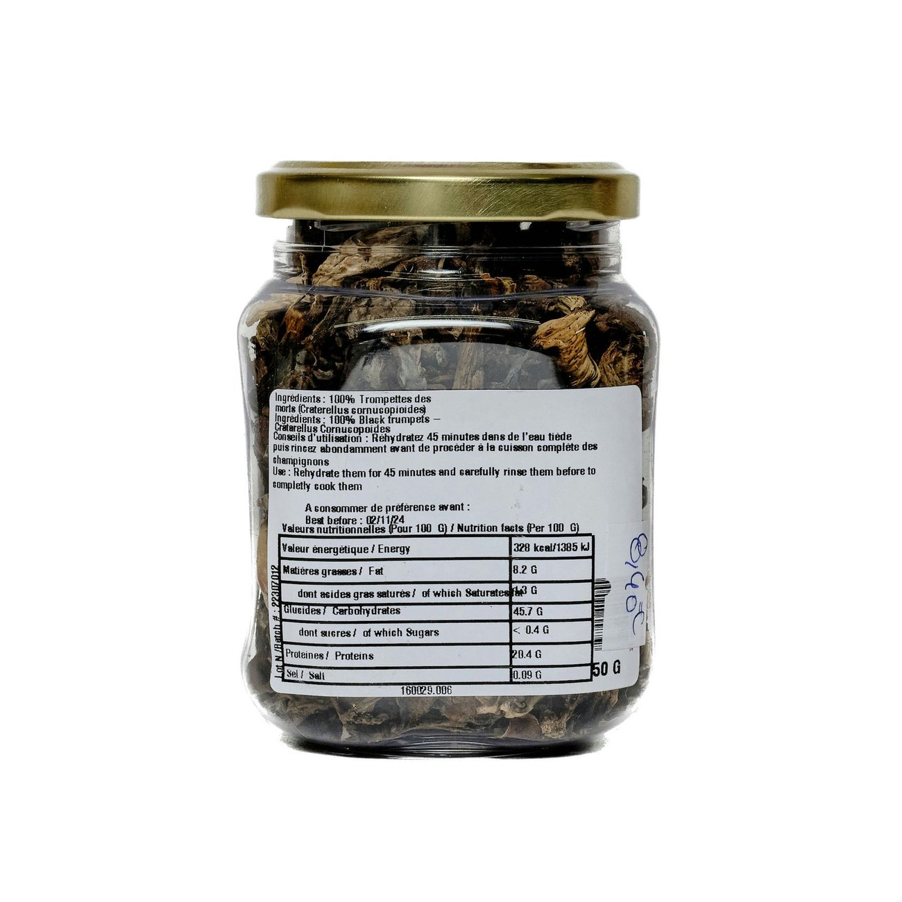 Délicieuses et d’une saveur intense, les Trompettes de la Mort Séchées de notre collection Foie Gras Luxe vont vous impressionner par leur goût unique et raffiné. Ces champignons se distinguent par leur forme en trompette et leur couleur noir intense, ce qui leur donne un aspect mystérieux et fascinant.