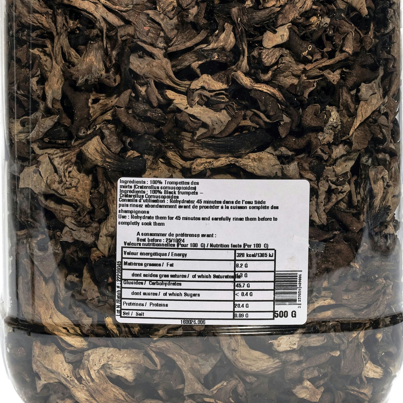 Pour obtenir ces Trompettes de la Mort Séchées d’une qualité exceptionnelle, nous avons choisi les spécimens les plus frais et les avons soigneusement séchés, afin de préserver leur texture unique et leur goût exquis. Le processus de séchage permet également de concentrer les saveurs, offrant ainsi une expérience gustative encore plus intense.