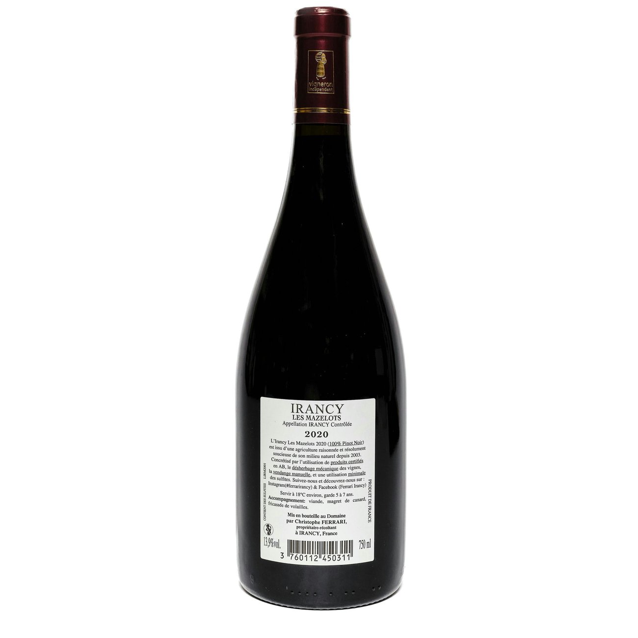 L’Irancy les Mazelots est un vin rouge issu du cépage Pinot Noir. Il présente une robe grenat avec des reflets rubis. Au nez, on retrouve des arômes de fruits des bois (framboise, cerise, cassis), d’épices (poivre, cannelle), de réglisse et une subtile touche de torréfaction. En bouche, le vin est ample et élégant, avec des tanins fins et des notes réglissées et confiturées. Il offre une combinaison harmonieuse de saveurs et de textures.